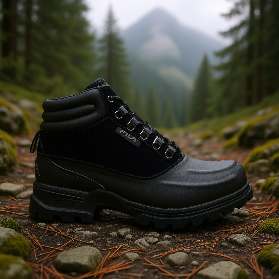 รองเท้าเดินป่ากันน้ำ Fila Weathertec สำหรับผู้ชาย สีดำ หน้าผ้าสังเคราะห์ พื้นยาง เหมาะสำหรับทุกฤดู