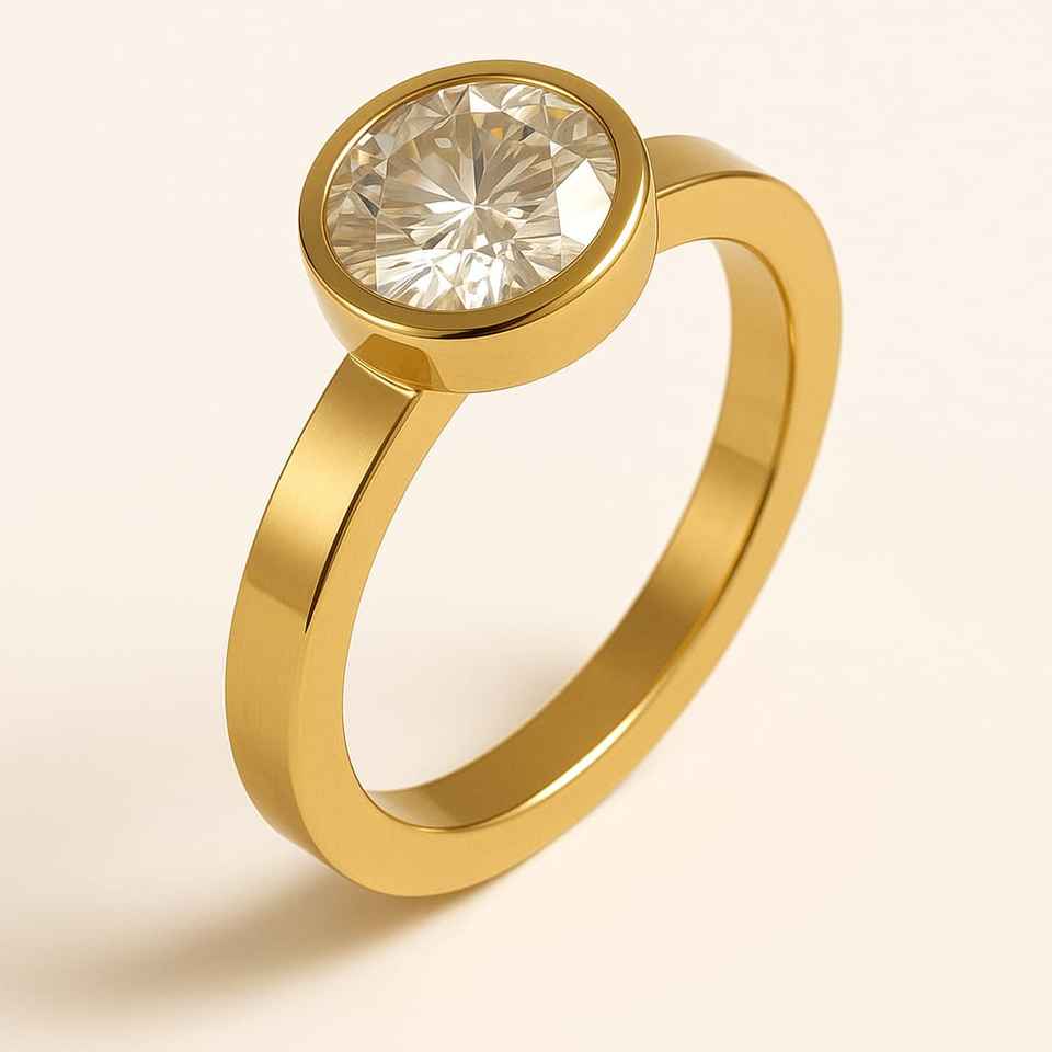 แหวนแต่งงานเพชรทรงกลมสำหรับการตกแต่งในห้องแล็บสีทอง14K สีเหลืองทอง1 CT G มีให้เลือกทุกขนาด