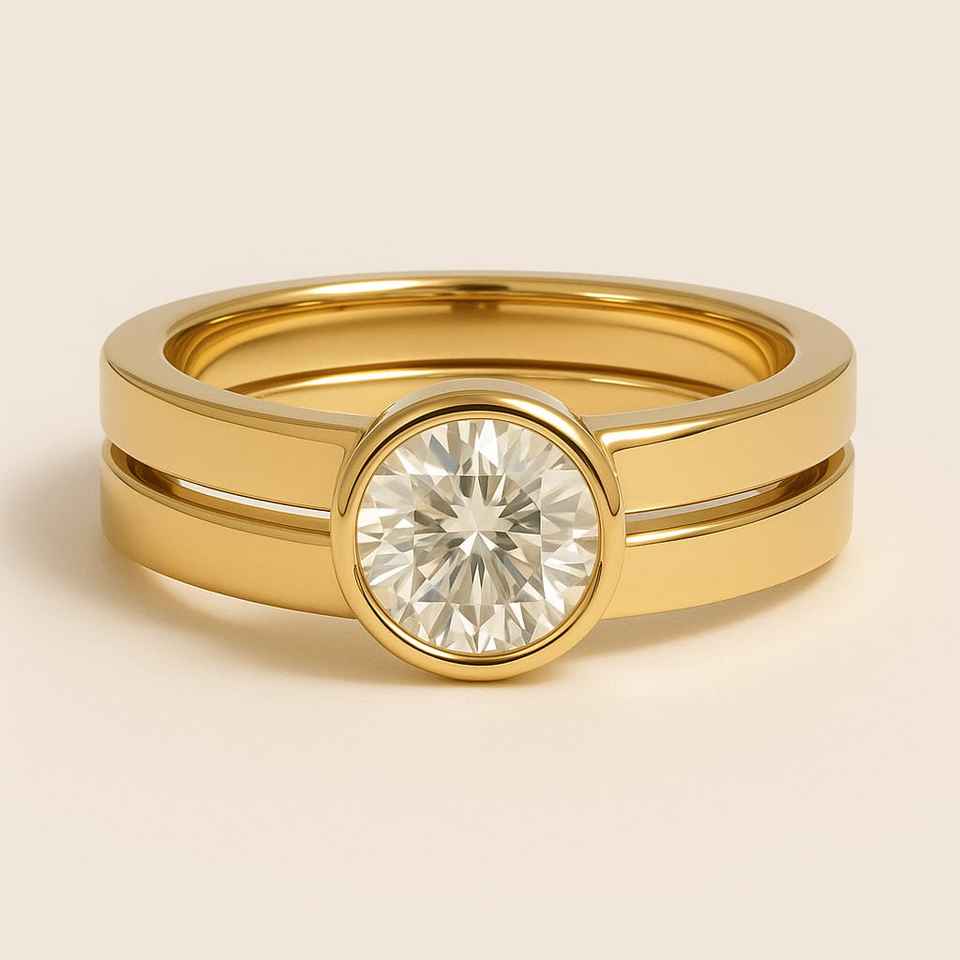 แหวนแต่งงานเพชรทรงกลมสำหรับการตกแต่งในห้องแล็บสีทอง14K สีเหลืองทอง1 CT G มีให้เลือกทุกขนาด