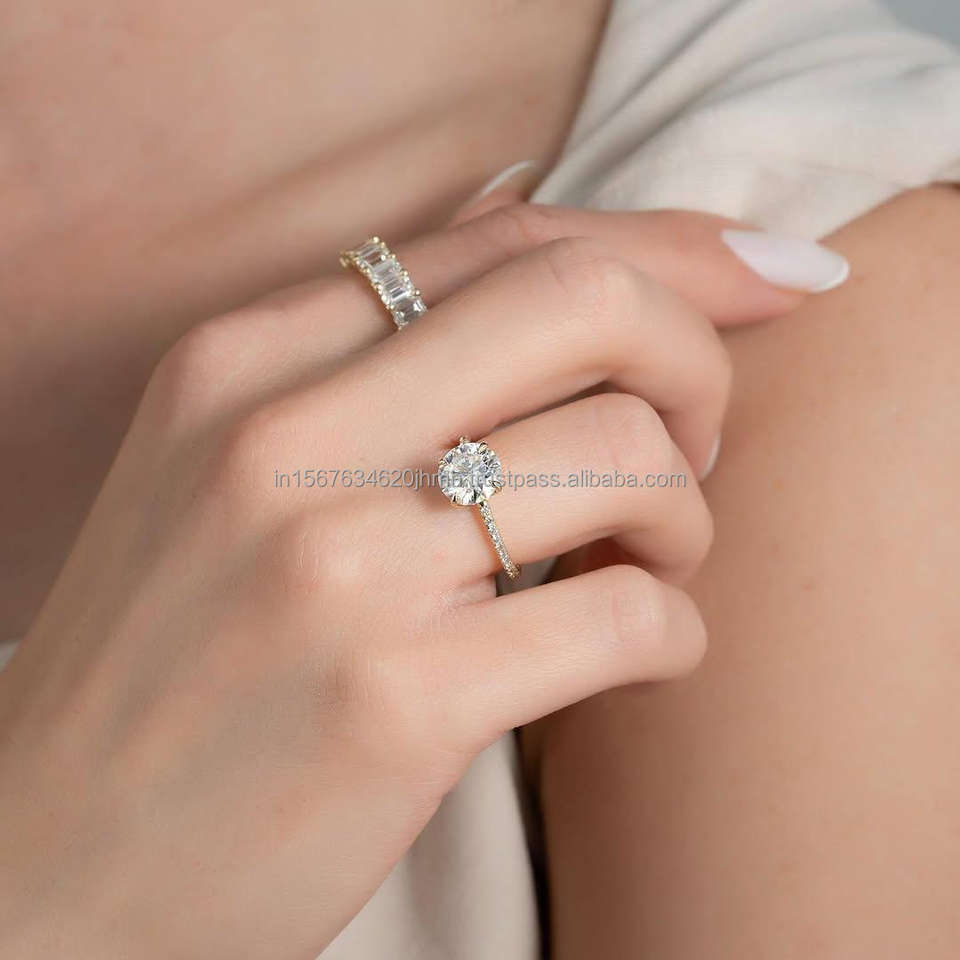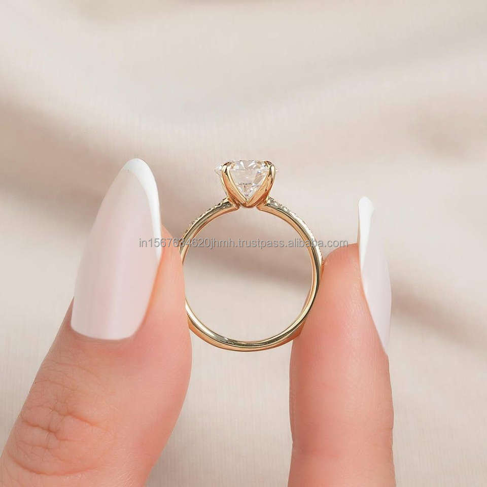 แหวนหมั้นทองคำ 14K ชุบโรเดียม ประดับเพชรธรรมชาติทรงกลม ได้รับการรับรองจาก GIA สำหรับจำหน่ายเครื่องประดับจำนวนมาก