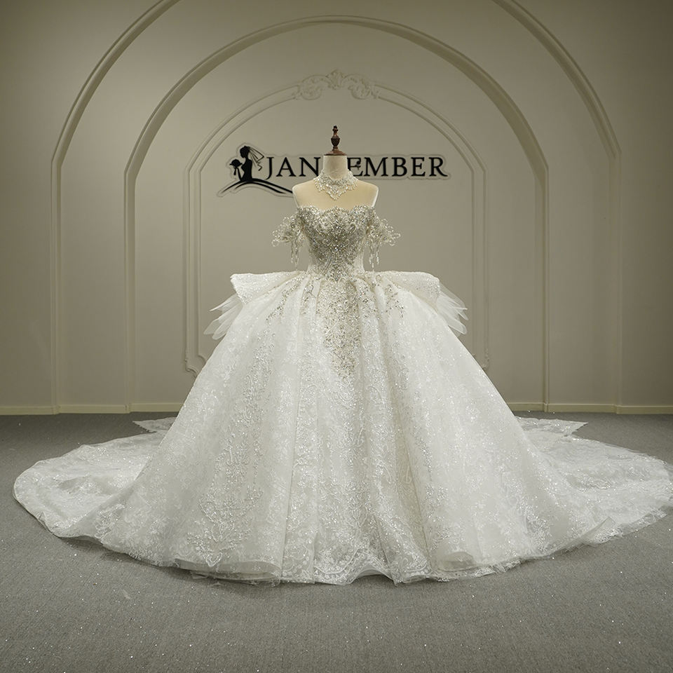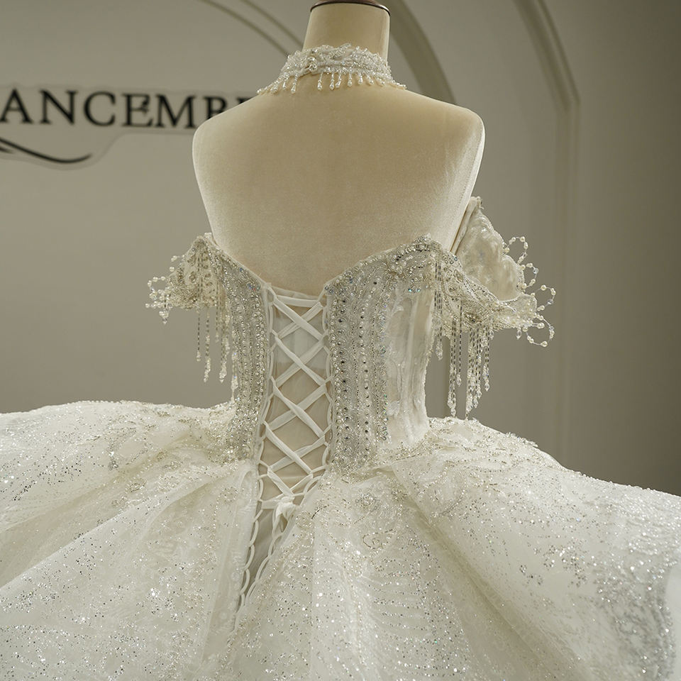 ชุดแต่งงาน GT26017 รุ่นโมเดิร์น ประดับกลิตเตอร์ พู่ห้อย แต่งลูกไม้ลายดอกไม้ ปักเลื่อม คริสตัล ทรงเอ็มไพร์