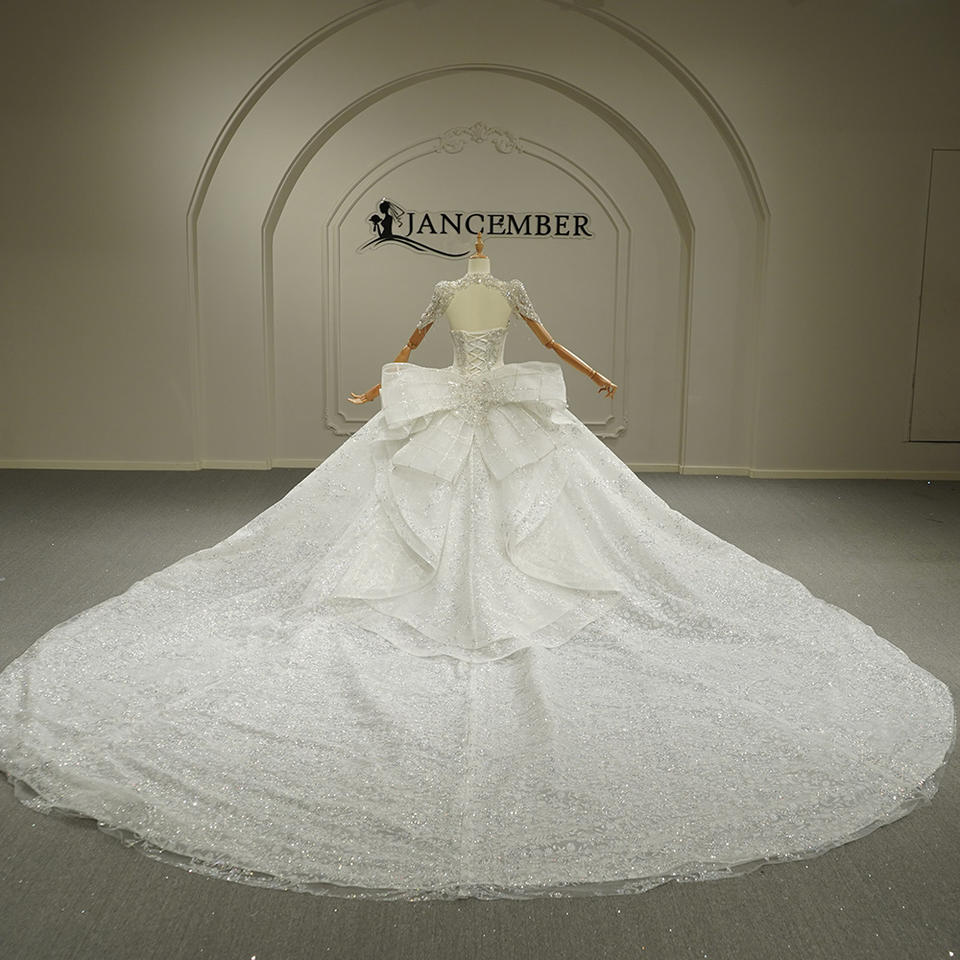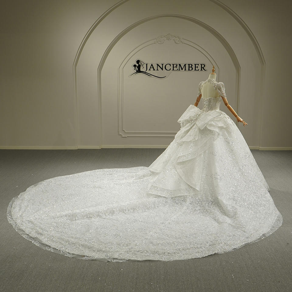 ชุดแต่งงานทรงเมอร์เมดทรัมเป็ตประดับลูกปัดหนัก แขนสั้น แต่งคริสตัล พู่ห้อย พร้อมชายกระโปรงยาวแบบชาเปล รุ่น GT26053