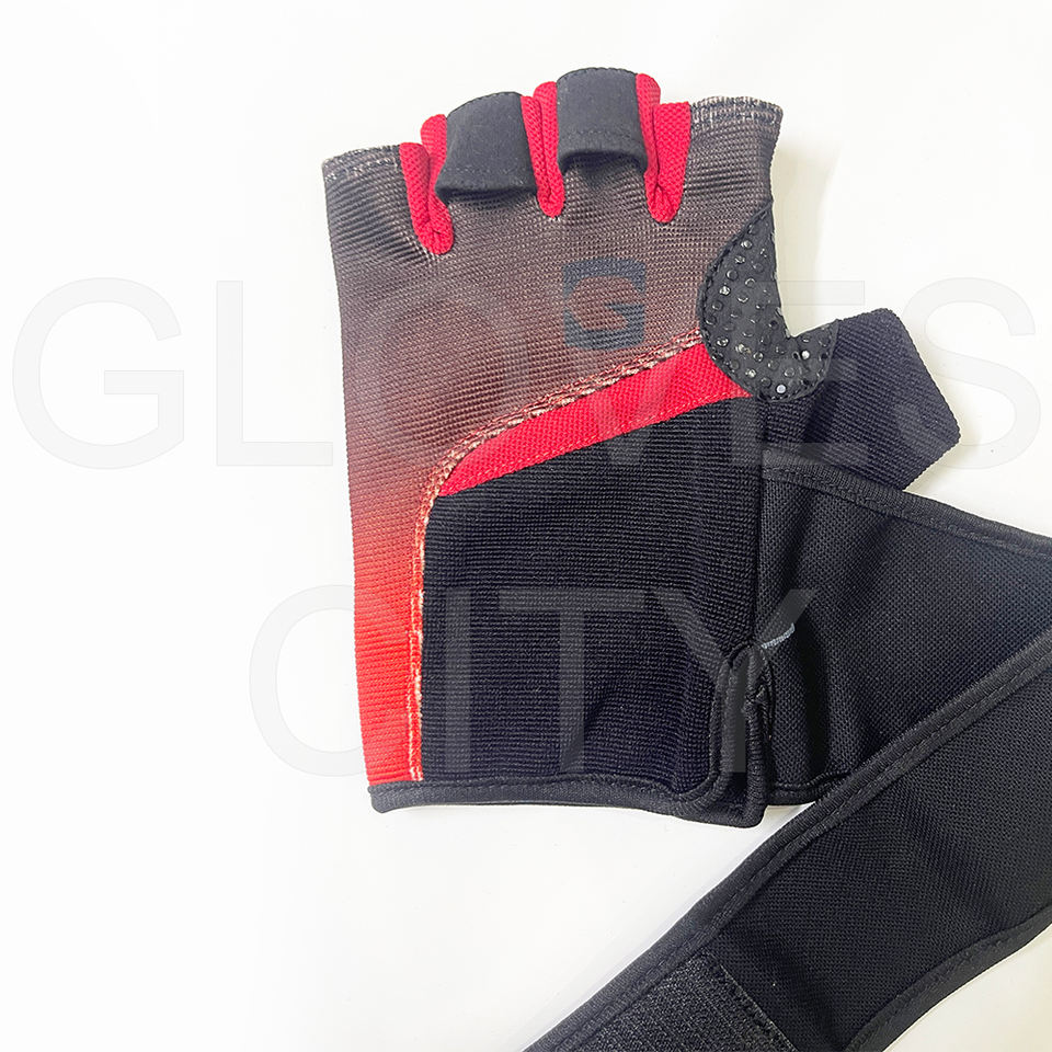 ถุงมือหนังสังเคราะห์สำหรับยกน้ำหนักครึ่งนิ้วทนทานปรับได้ระบายอากาศได้พร้อมแผ่นรองฝ่ามือสำหรับยิม
