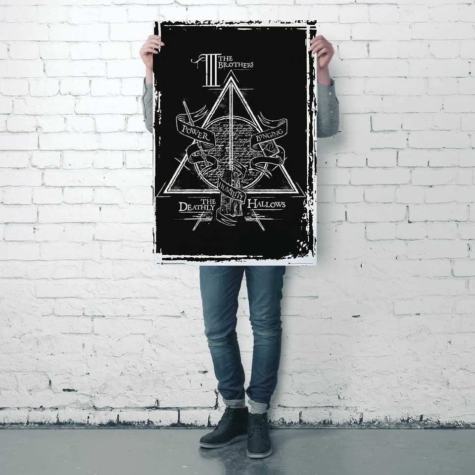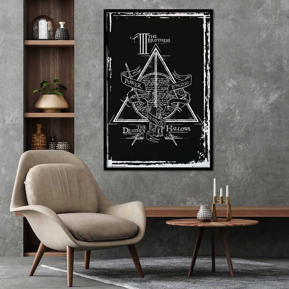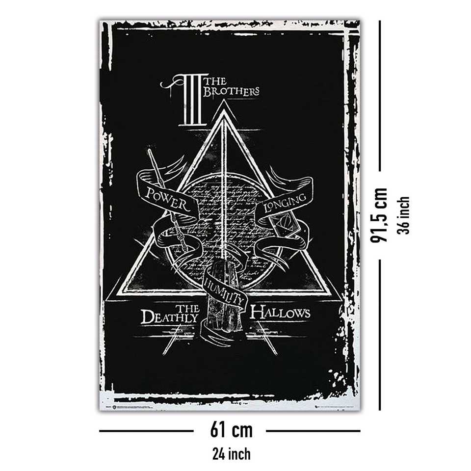 โปสเตอร์ผ้าใบแฮร์รี่ พอตเตอร์และเครื่องรางยมทูต กรอบสีดำสำหรับติดผนัง