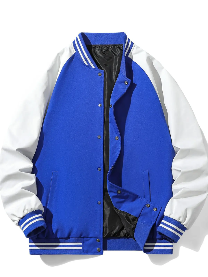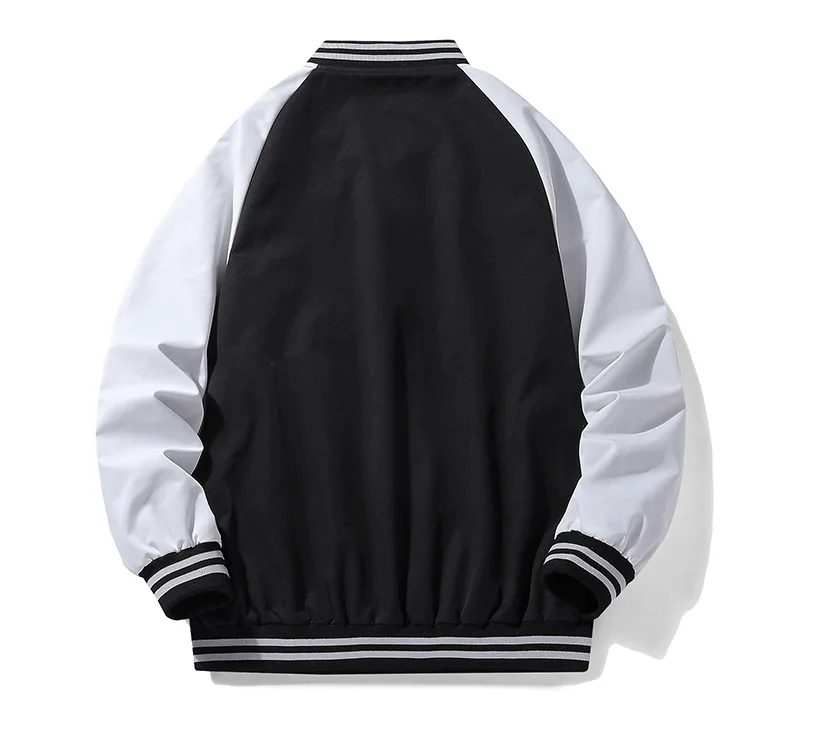 เสื้อแจ็กเก็ตทีมเบสบอลสำหรับผู้ชายปักลายด้วยกำมะหยี่แขนเสื้อหนังมีปกตั้งโลโก้ด้านหน้าแบบสั่งทำ