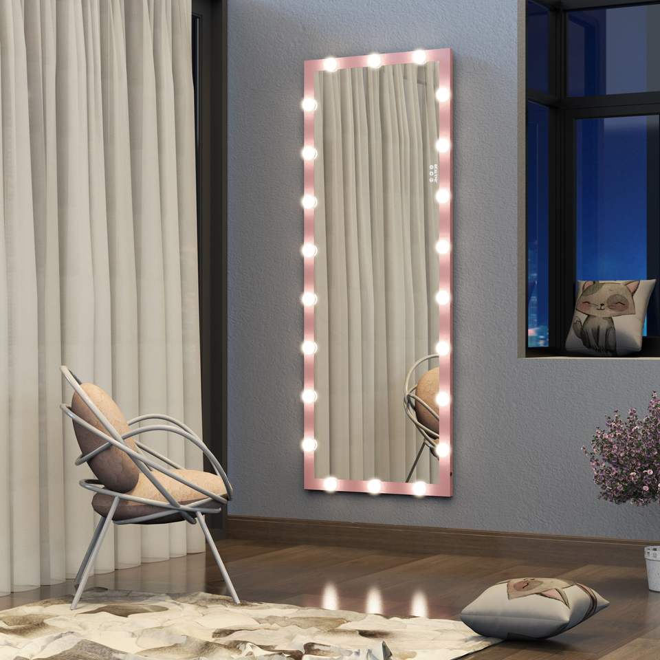 กระจกโต๊ะเครื่องแป้ง LED ความยาวเต็มรูปแบบสำหรับฮอลลีวูด, กระจกสีชมพูควบคุมด้วยระบบสัมผัส3โหมดสำหรับห้องนอนห้องแต่งตัว