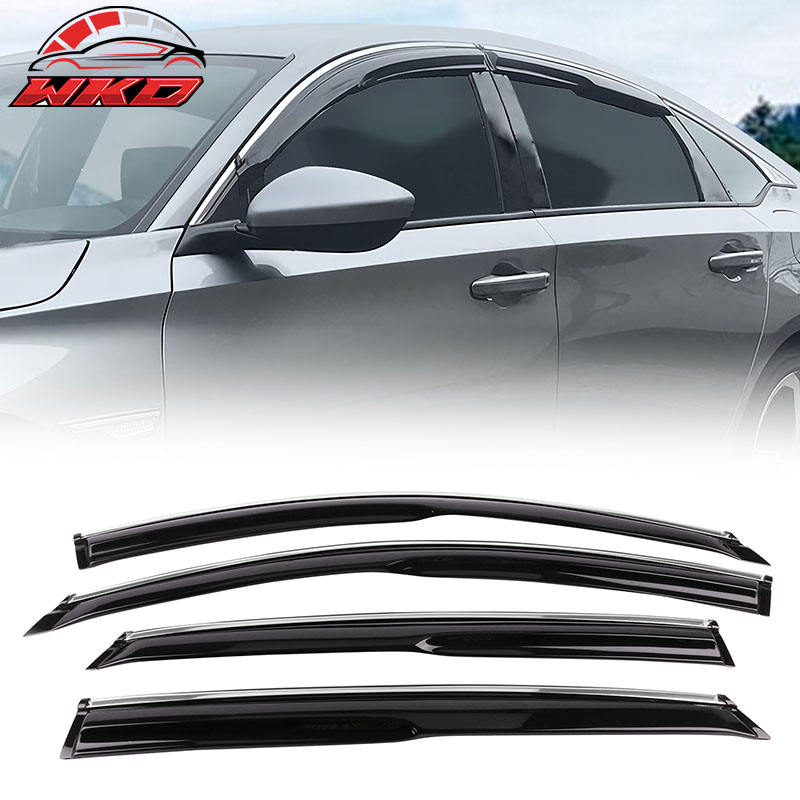 สำหรับ Honda Accord 18-25 ชุดบังแดดหน้าต่างแบบติดตั้ง 4 ชิ้น สไตล์ Mugen พร้อมขอบโครเมียม