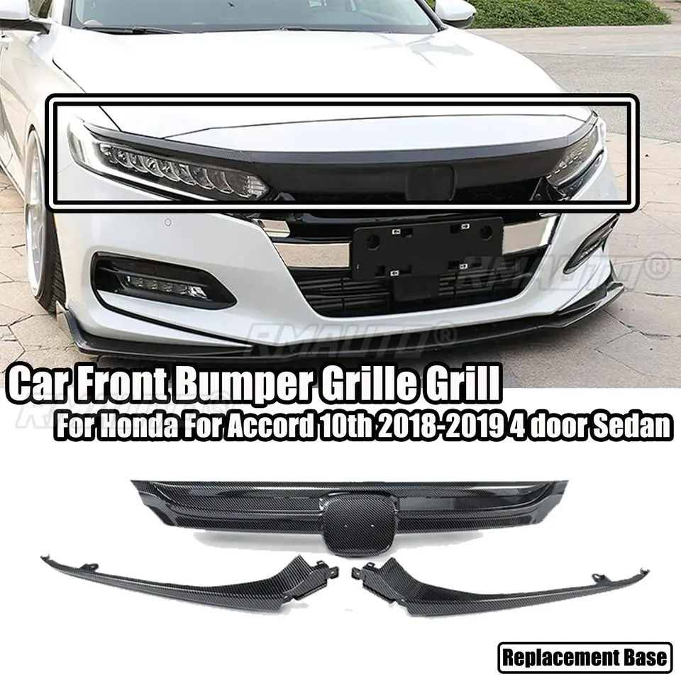 สำหรับ Honda Accord Sedan รุ่นที่ 10 ปี 2018-2020 4 ประตู กระจังหน้าโครเมียมสีเงินลายคาร์บอนไฟเบอร์ ชิ้นส่วนทดแทน
