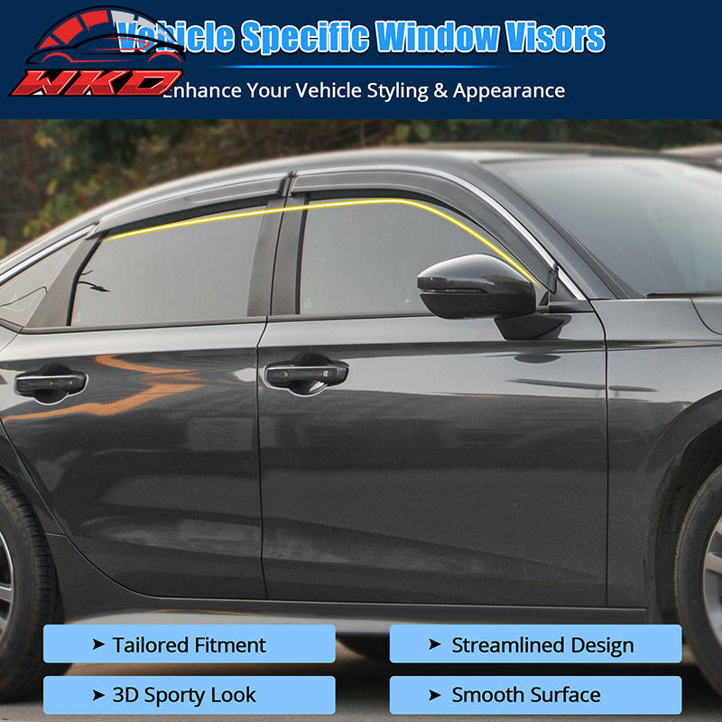 สำหรับ Honda Civic 22-26 Sedan 4 ประตู ชุดบังแดดหน้าต่างอะคริลิคแบบติดกาวพร้อมโครเมียม 4 ชิ้น อุปกรณ์ป้องกันขอบหน้าต่างประตูรถยนต์