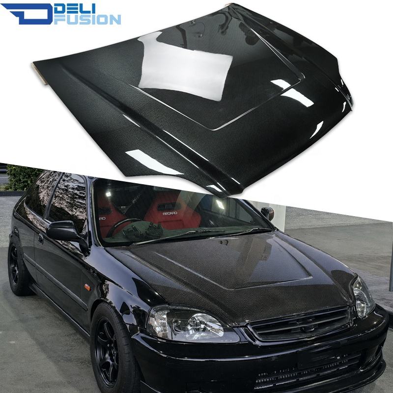 ฝากระโปรงหน้าคาร์บอนไฟเบอร์แบบมีช่องระบายอากาศสำหรับรถยนต์ฮอนด้า ซีวิค EK4 EK9 DLF Typer Hatchback ปี 1996-1998 รุ่น EK Bonnet