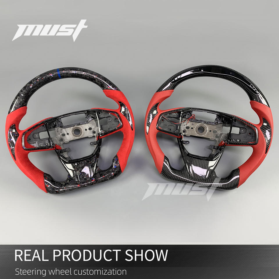 พวงมาลัยสปอร์ตคาร์บอนไฟเบอร์พร้อมไฟ LED สำหรับฮอนด้ารุ่นที่สิบ Civic 2016-2021 Si ประเภท R FK8 hatchback