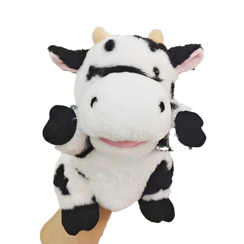 ของเล่นหุ่นเชิดมือแบบเปิดปากสำหรับเด็กและเยาวชนตุ๊กตาวัวทำจากผ้าฝ้าย PP สำหรับบรรเทาความเครียดในสต็อก