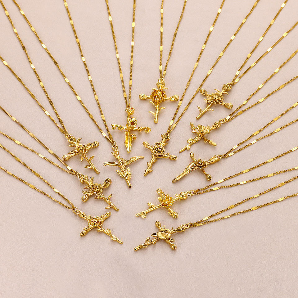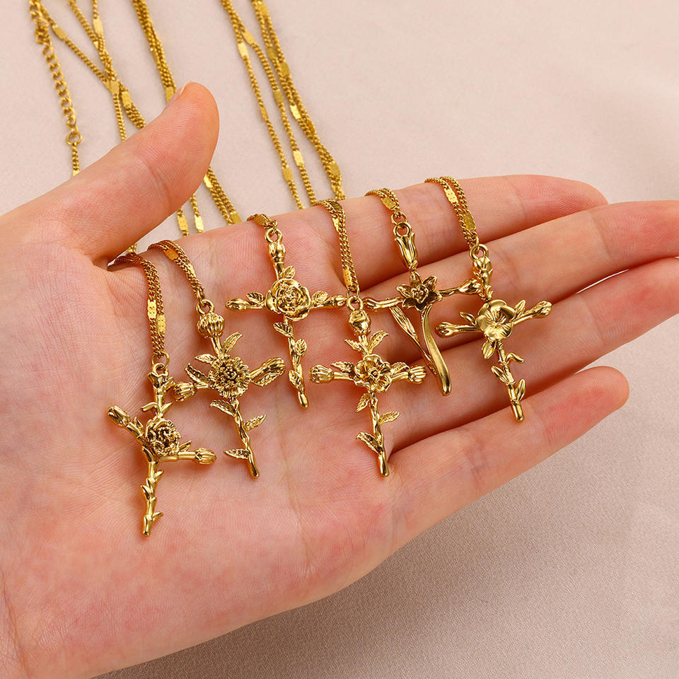 สร้อยคอจี้รูปดอกไม้เดือนธันวาคมแบบสามมิติ ชุบทองบนสแตนเลส พร้อมสายสร้อยไม้ไผ่ สำหรับทุกเพศ เหมาะสำหรับเทศกาลต่างๆ ลดราคาพิเศษ
