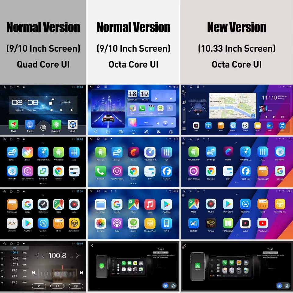 GPS, สเตอริโอ, TPMS, เครื่องขยายเสียง, OBD2, DSP, คาร์เพลย์, Mirror Link, Android Auto, ไมโครโฟนในตัว, หน้าจอแยก, File Manager, ควบคุมพวงมาลัยรถยนต์ฟังก์ชัน