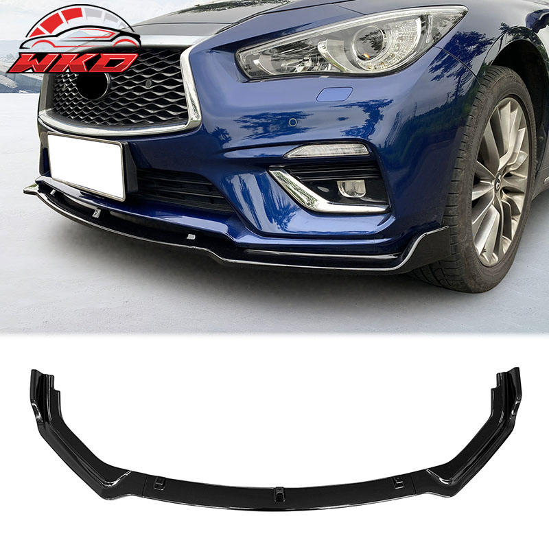 สำหรับ Infiniti Q50 2018-2024 สปอยเลอร์กันชนหน้าสีดำเงา ชุดแต่ง PP 3 ชิ้น คุณภาพสูง
