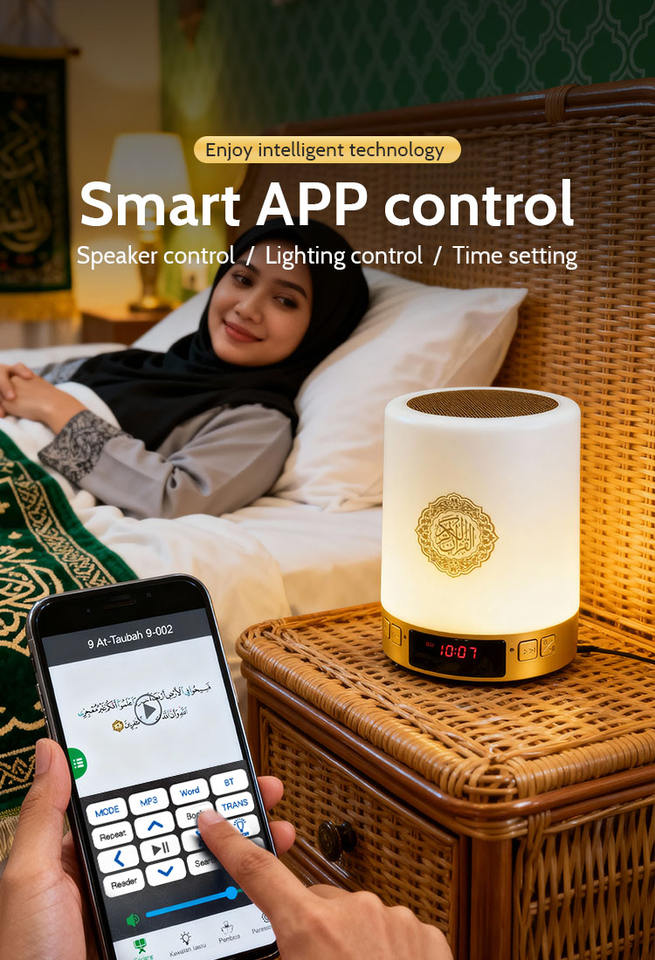 สำหรับเครื่องเล่นเสียงอัลกุรอานภาษาอาหรับอิสลาม 114 บท ควบคุมด้วยระบบสัมผัสผ่านแอปพลิเคชัน หน่วยความจำ 8GB รองรับ 17 ภาษา ดีไซน์พกพาสะดวก