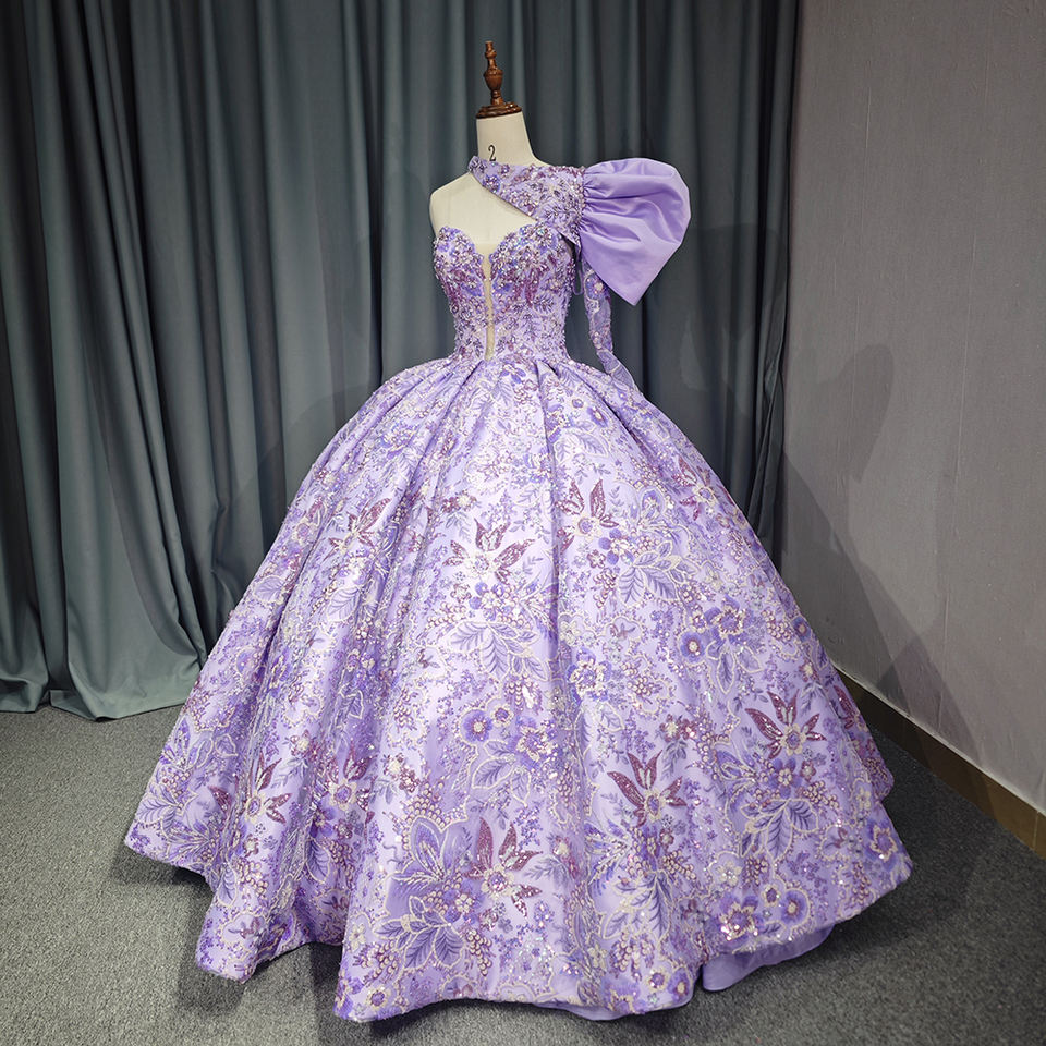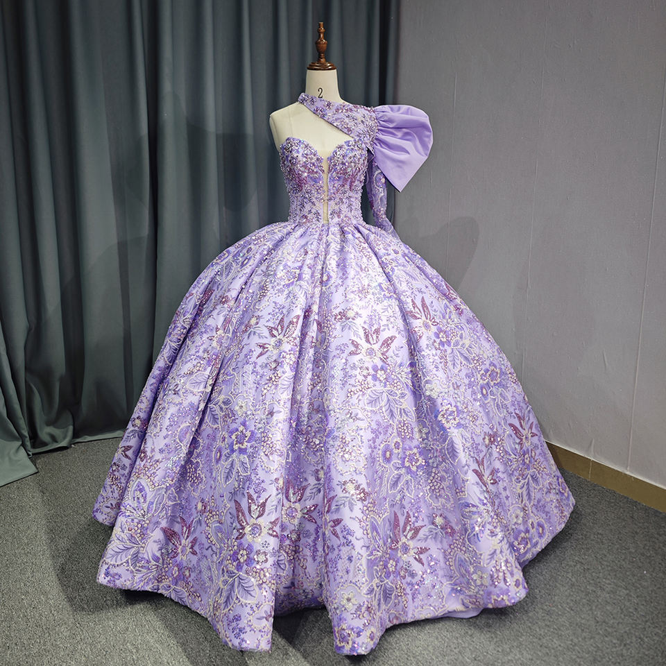 ชุดราตรียาวเปิดไหล่ข้างเดียวสำหรับ6687 Jancember ชุดเดรสพองมีสไตล์ลายลูกไม้ประดับด้วยลูกปัด