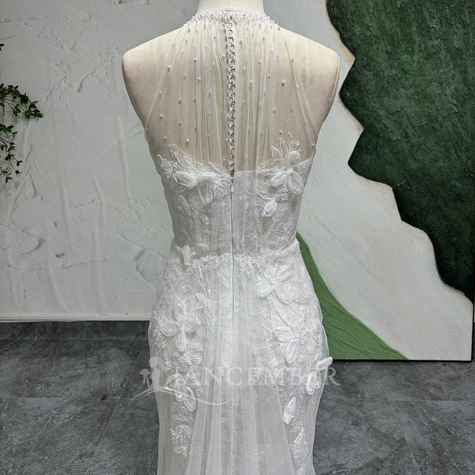 ชุดนางเงือกสำหรับงานแต่งงานสมัยใหม่สำหรับ LSSG129 jancember กระโปรงยาวผูกคอแขนกุดติดคริสตัลสำหรับเจ้าสาว