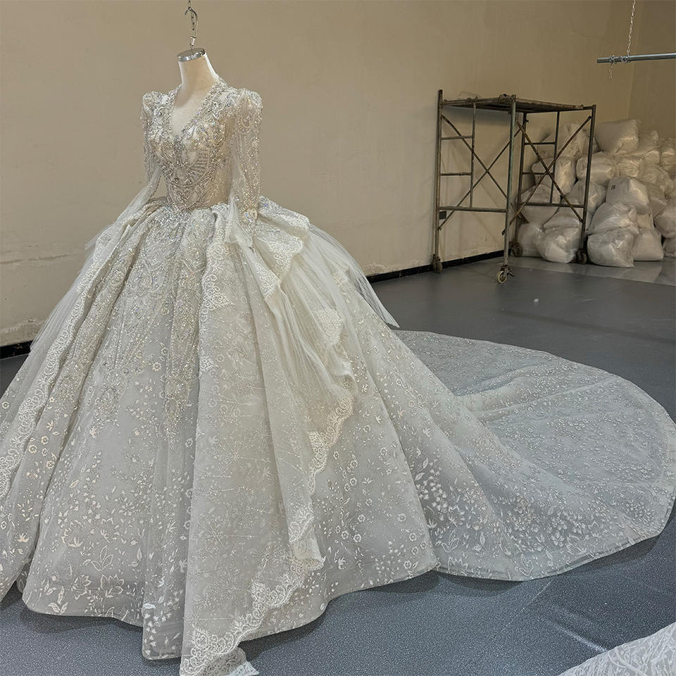 สำหรับ MN238 Jancember ชุดแต่งงานสมัยใหม่ชุดเดรสเจ้าสาวแขนยาวลายลูกไม้ประดับคริสตัล