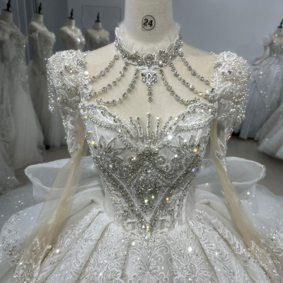 ชุดเดรสแต่งงานสำหรับ XS079แจนเซมเบอร์ชุดแต่งงานแขนยาวสวยพร้อมโบว์ประดับด้วยลูกไม้ปักคริสตัลดอกไม้