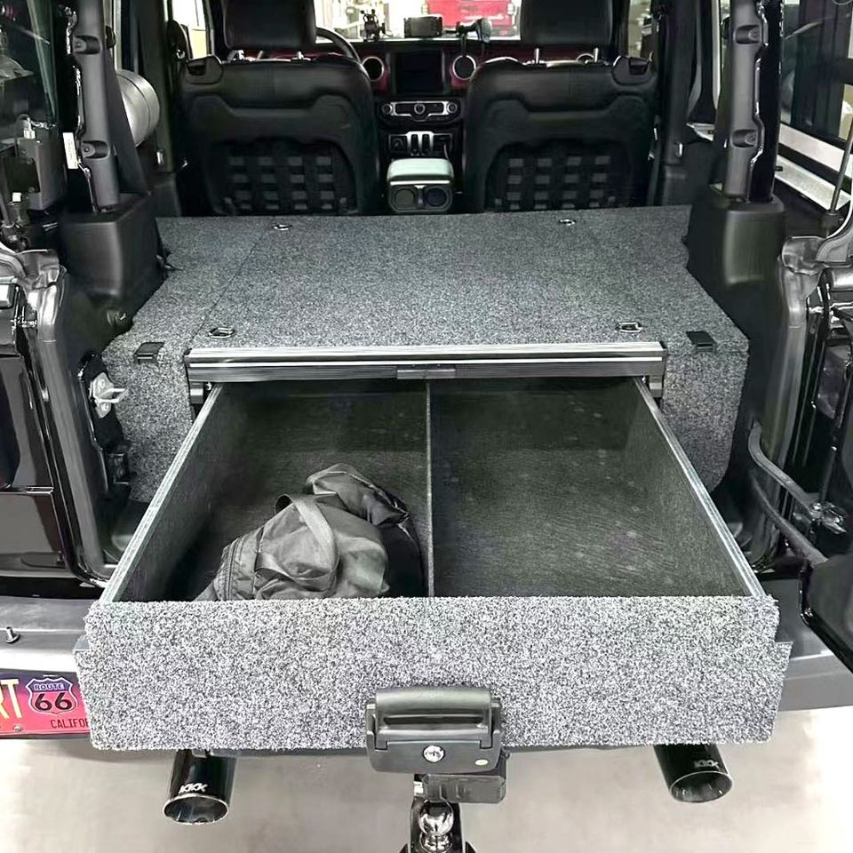 อุปกรณ์เสริมสำหรับรถจี๊ปแรงเลอร์ JL ชุดจัดเก็บของท้ายรถกระบะ ระบบลิ้นชัก 4x4 ลิ้นชักท้ายรถกระบะ
