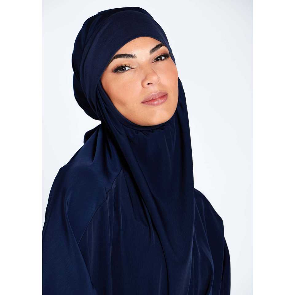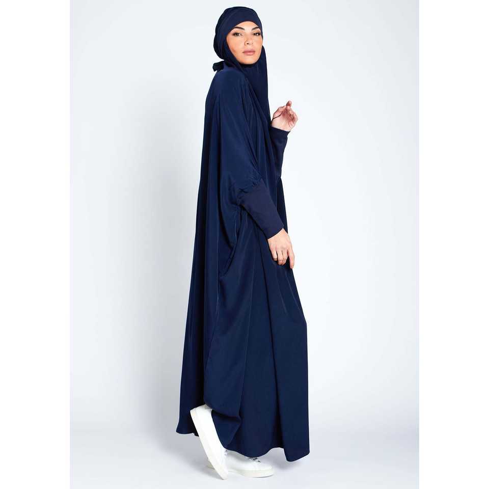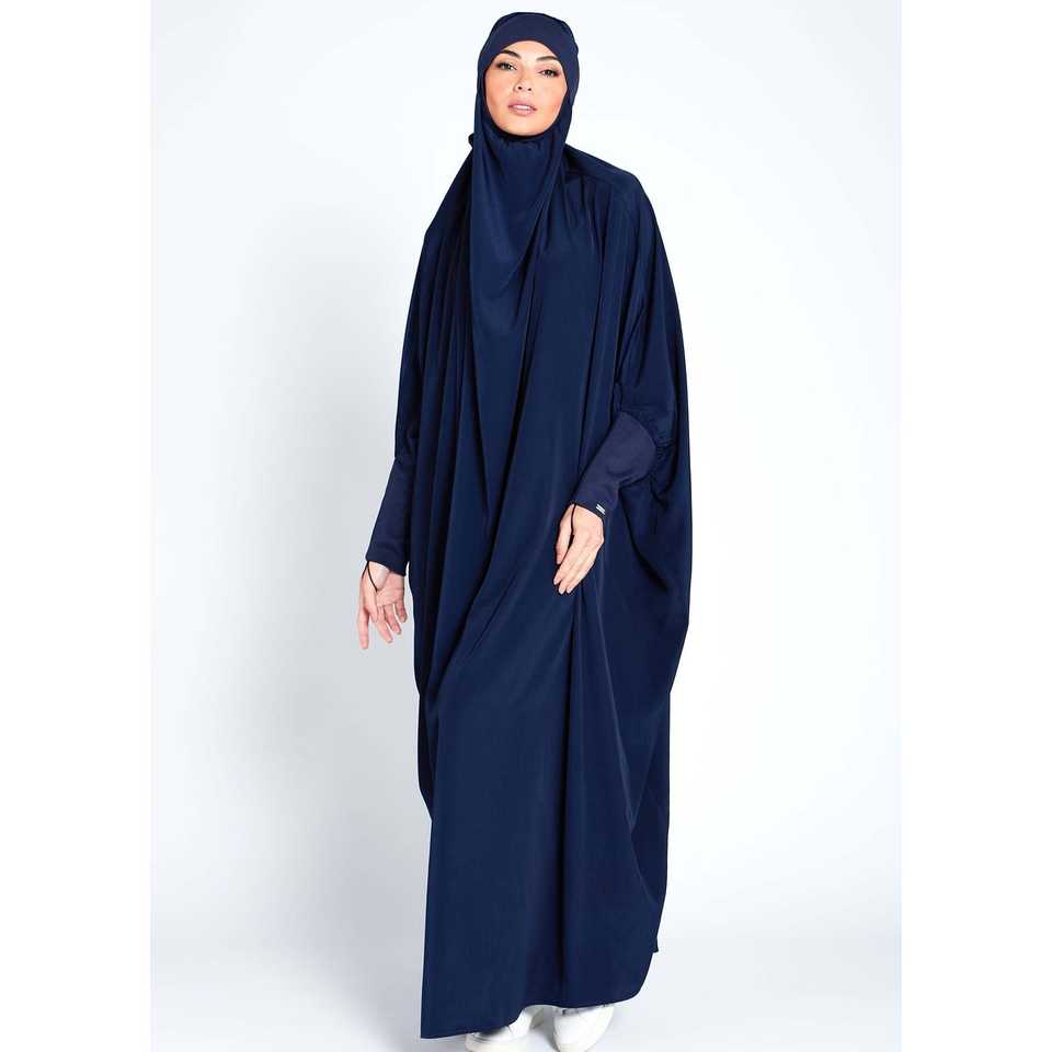 ชุดอาบายาแบบลำลองสองชิ้นสำหรับ jilbab สีน้ำเงินเครื่องแต่งกายสวดมนต์สีกรมท่าแบบมีระบายสำหรับฤดูร้อนฤดูหนาวไซส์เดียวเหมาะกับทุกคน