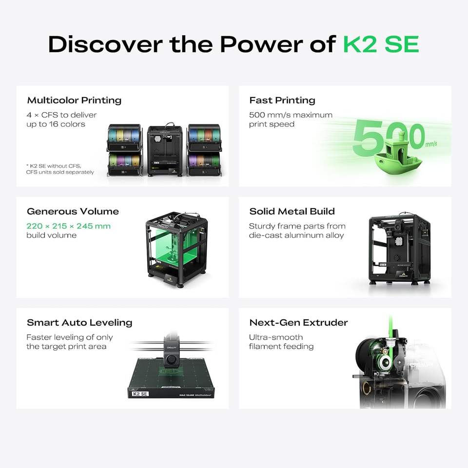 เครื่องพิมพ์สามมิติ K2 SE ขนาดพื้นที่พิมพ์ 220x215x245 มม. ระบบปรับระดับอัตโนมัติ รองรับการพิมพ์แบบ FDM ใช้เส้นพลาสติก PLA พร้อมแผ่นกระจกนิรภัยแบบให้ความร้อน รองรับไฟฟ้า AC 110-220V