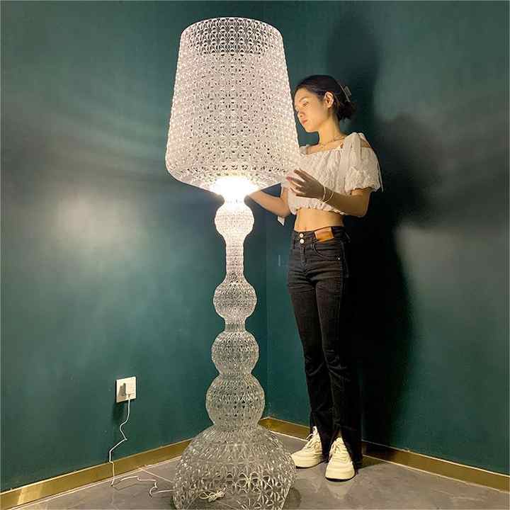 โคมไฟแก้วไวน์ดีไซน์ทันสมัยแบบหรี่แสงได้สไตล์อินสตาแกรมสำหรับห้องนั่งเล่น โคมไฟตั้งพื้นแบบโปร่งแสงสำหรับตกแต่งโรงแรม