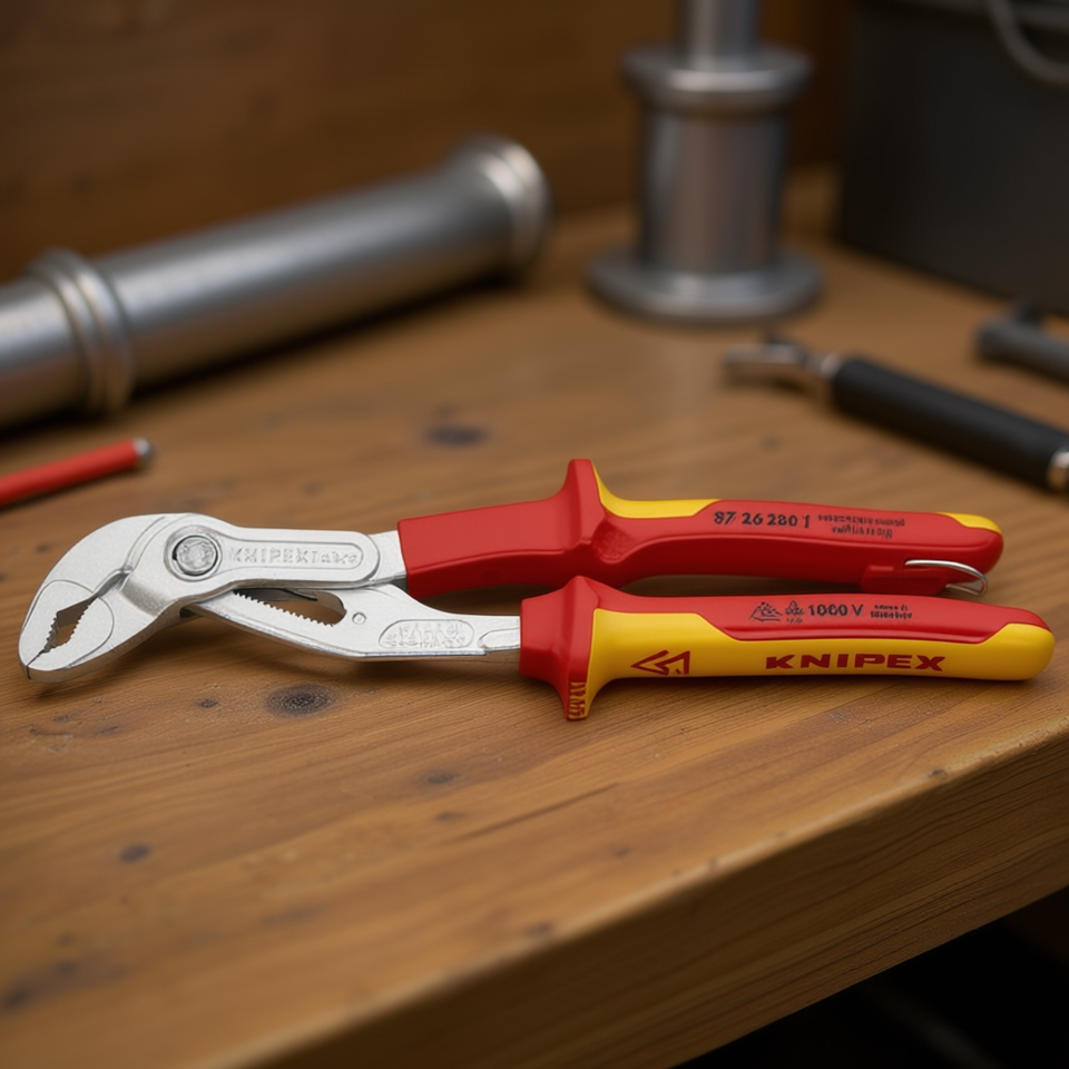 คีมปั๊มน้ำ Knipex Cobra VDE Hightech ด้ามชุบโครเมียม หุ้มฉนวนพร้อมด้ามจับหลายชั้น ผ่านการทดสอบมาตรฐาน VDE