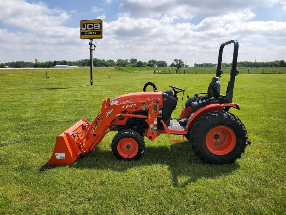 รถแทรกเตอร์ล้อยางมือสอง Kubota LX2620HSD สำหรับงานฟาร์ม พร้อมชิ้นส่วนหลัก เช่น เครื่องยนต์ มอเตอร์ เกียร์ปั๊ม เกียร์บ็อกซ์