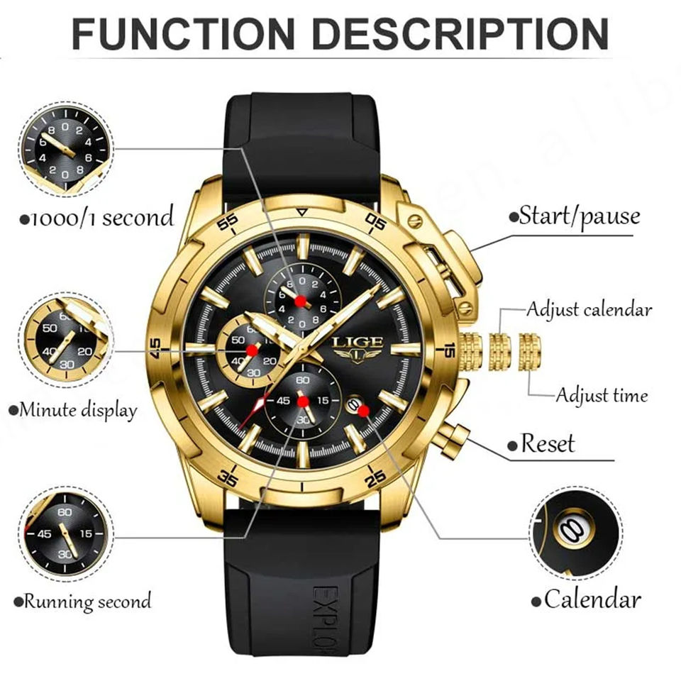 สำหรับ Lige 2024นาฬิกาสแตนเลสผู้ชาย, นาฬิกาข้อมือควอตซ์หรูหราพร้อมปฏิทินการเคลื่อนไหวของพลเมืองธุรกิจสบายๆ8990 W