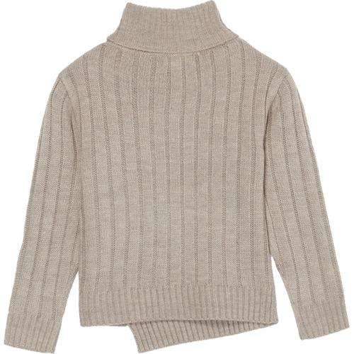 เสื้อถักลายสก๊อตหนาสีขาวสีเทาของผู้หญิง