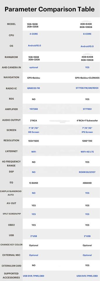 GPS, สเตอริโอ, แฮนด์ฟรี, OBD2, ไมโครโฟนในตัว, File Manager, ควบคุมพวงมาลัยรถยนต์, Mirror Link, ภาพในภาพ, หน้าจอแยก