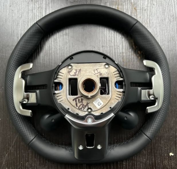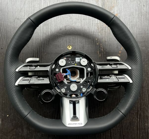 พวงมาลัยรถหรูหนังสีดำเจาะรูทรงแบน4ก้าน Mercedes Benz AMG GT 2018 2019