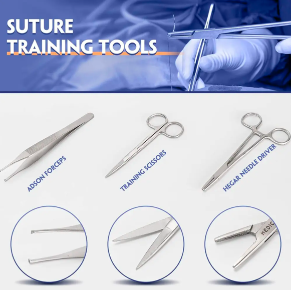 ชุดฝึกเย็บสำหรับนักเรียนทางการแพทย์ชุดฝึกเย็บพร้อมเครื่องมือแผ่นเหล็กด้วยตนเอง