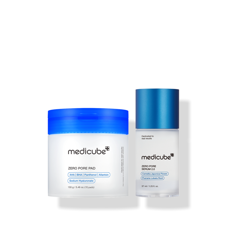 ชุดผลิตภัณฑ์ดูแลผิวหน้า Medicube Zero Pore 2 ชิ้น ส่วนผสมคุณภาพสูงจากเกาหลี ประกอบด้วย AHA และกรดไฮยาลูโรนิก บรรจุในขวด