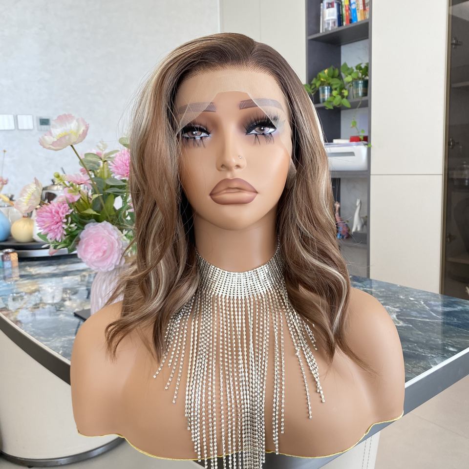 วิกผมสังเคราะห์แบบไม่ต้องใช้กาว ขนาด 13x4 นิ้ว สีน้ำตาลกลาง พร้อมเชือกผูกแบบใส ทนความร้อน ขนาด 12 นิ้ว ลอนหลวม นุ่มเป็นธรรมชาติ