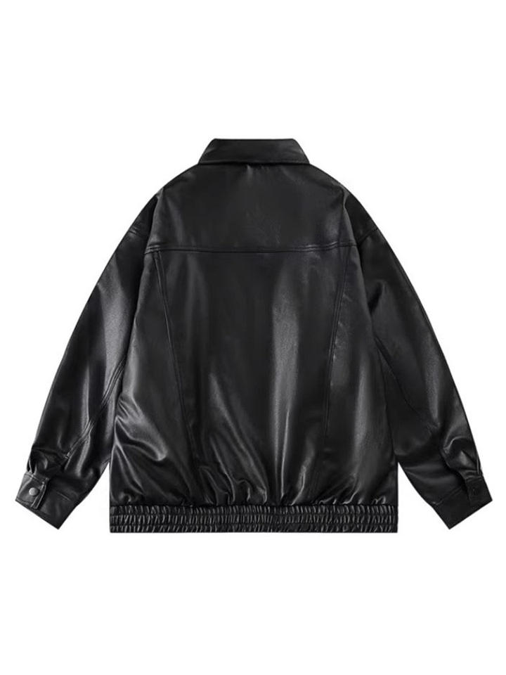แจ็คเก็ตหนัง PU ย้อมสีสำหรับผู้ชาย ไซส์ใหญ่ กันลม สไตล์ฮิปฮอป โลโก้ด้านหน้าแบบ Varsity ปรับแต่งได้ หนา เหมาะสำหรับฤดูใบไม้ร่วง