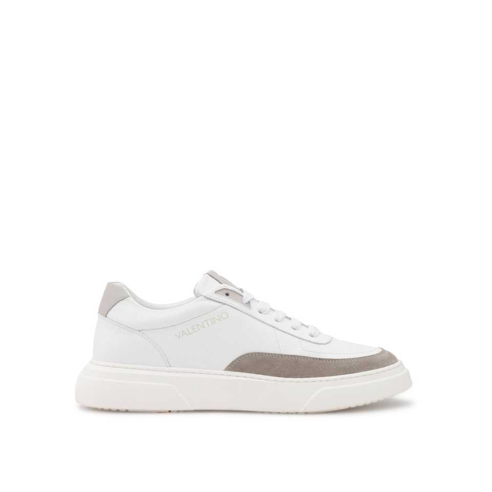 รองเท้าส้นเตี้ยสำหรับผู้ชายคอลเล็คชั่นสีขาว/น้ำแข็งหนังลูกวัวและหนังลูกวัวพื้นยางต่ำผลิตจากอิตาลี