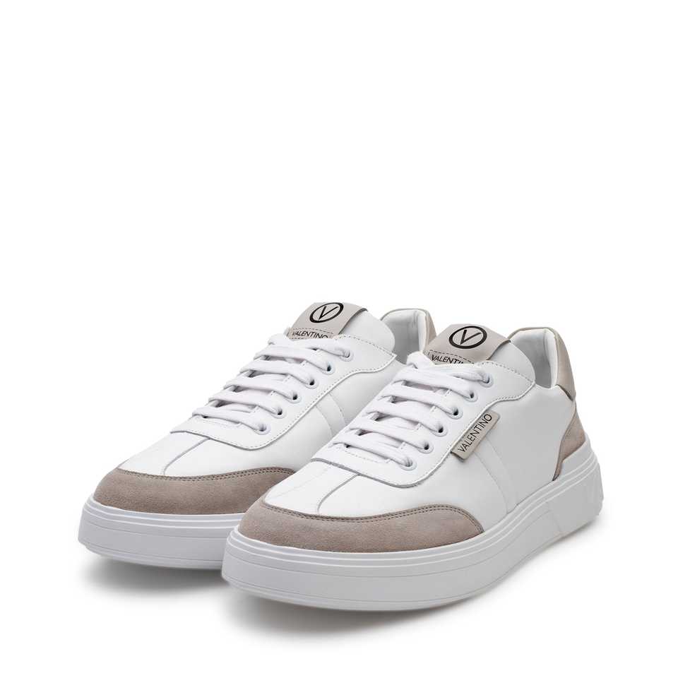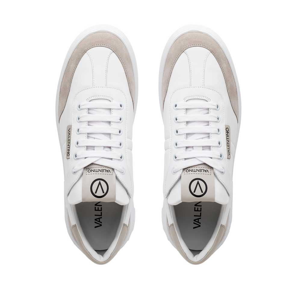 รองเท้าผ้าใบผู้ชายสไตล์ Urban Court ผลิตในอิตาลี สีขาว/เทา หนังกลับ ซับในตาข่าย โลโก้ V เพิ่มความสูง สไตล์สปอร์ต ดีไซน์หัวรองเท้าใหม่