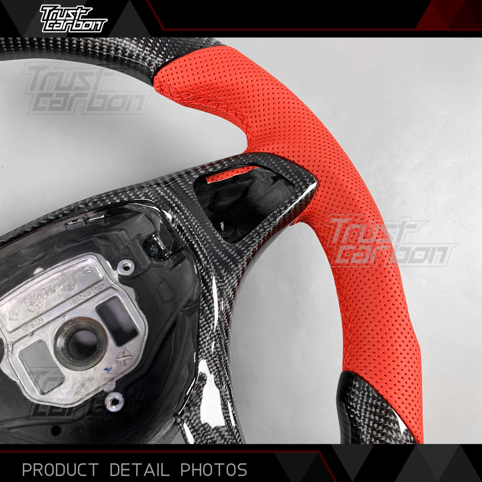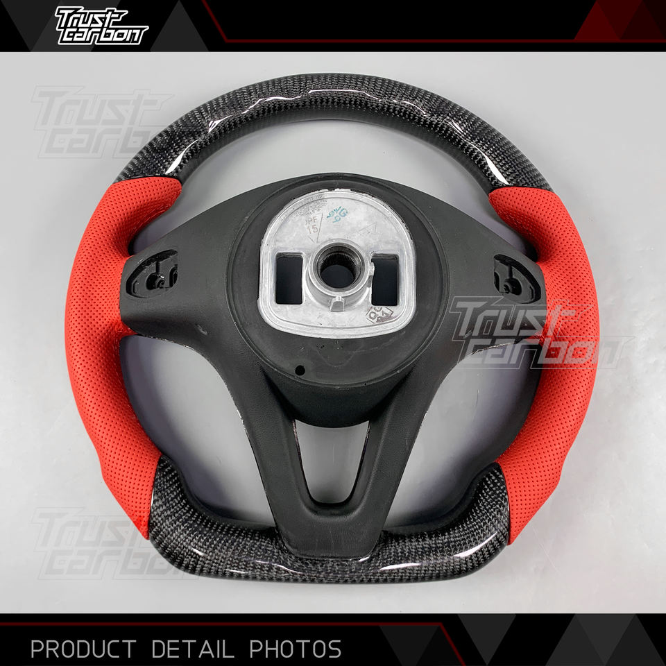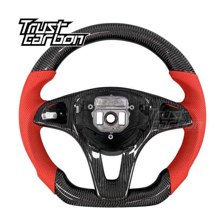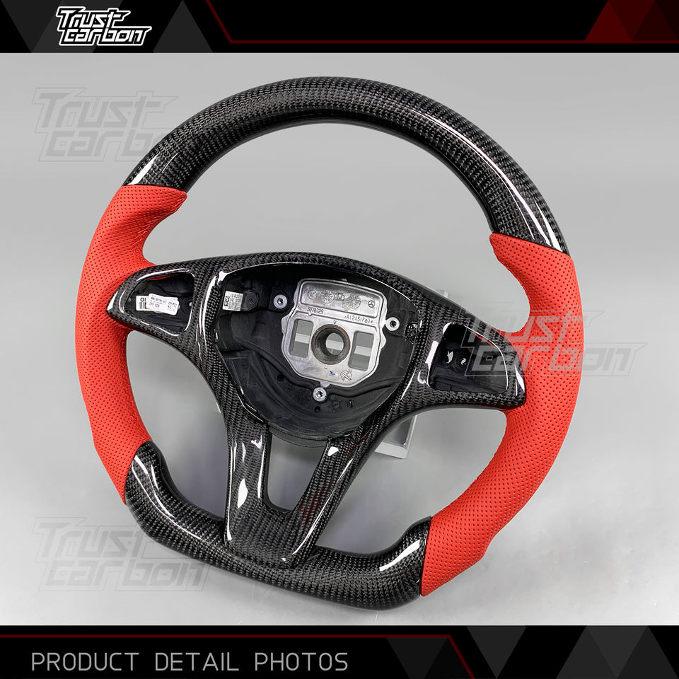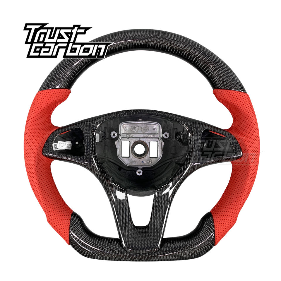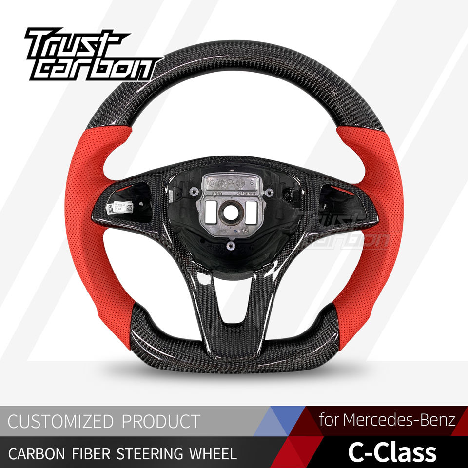 For Mercedes-Benz C63 C Class 2015-2018 C260 C200L C260L C300 CLA C200 W205 Custom Carbon Fiber Steering Wheel with Red Grips