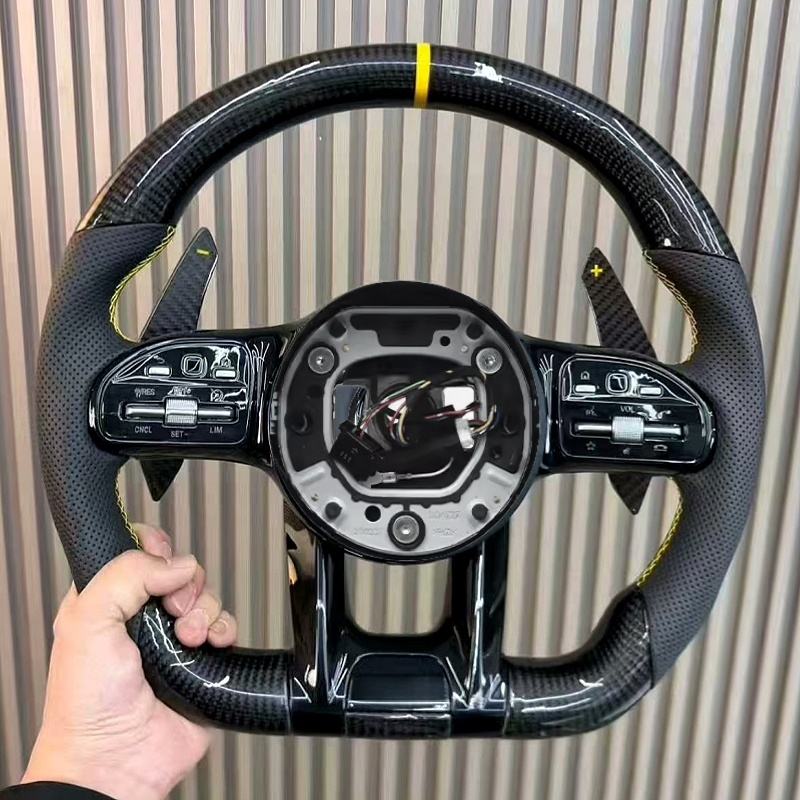 พวงมาลัยรถยนต์สปอร์ตคาร์บอนไฟเบอร์สำหรับเมอร์เซเดสเบนซ์พวงมาลัยรถยนต์ W167 C238 W213 C254 X254 E63