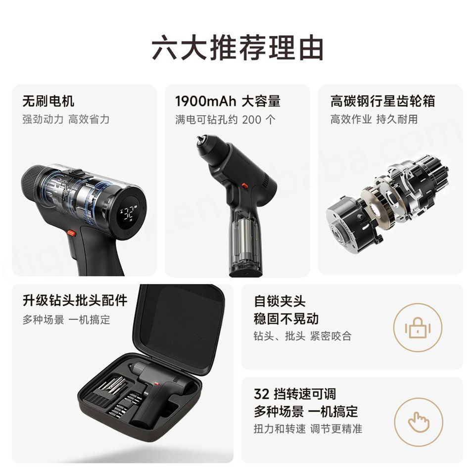 สำหรับสว่านไฟฟ้าไร้แปรงถ่านของ Mijia 2 MJWSDZ002QW สีดำ