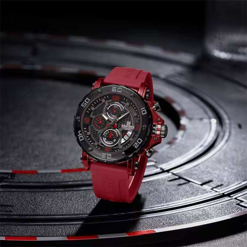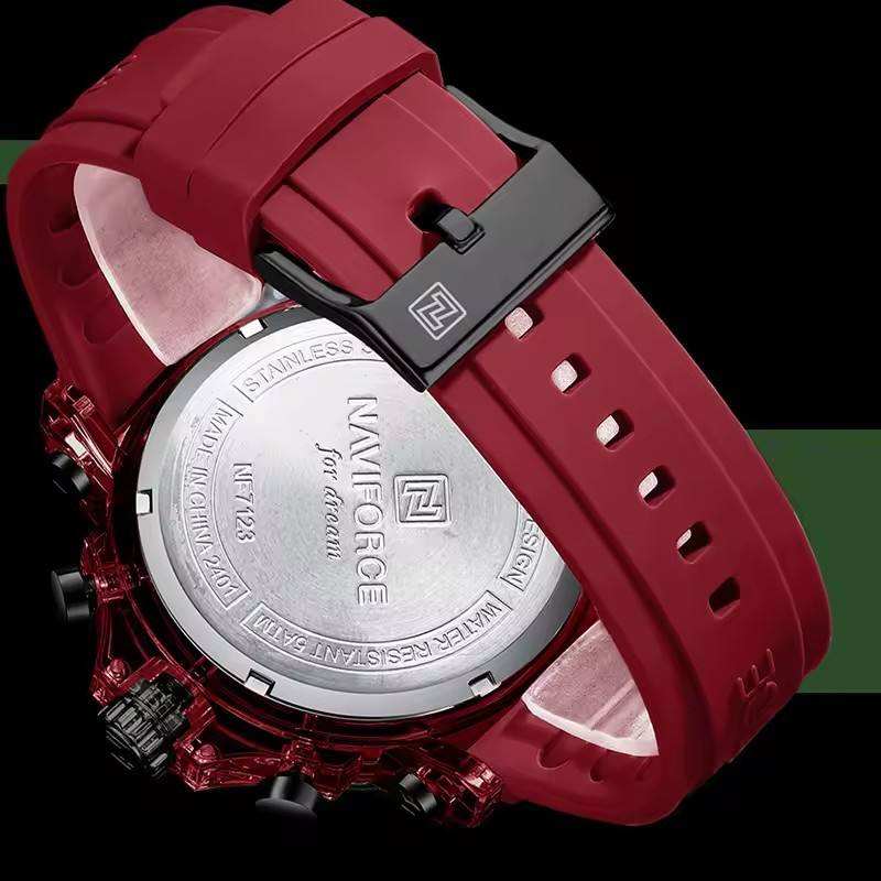 สำหรับ Naviforce นาฬิกาสปอร์ตของผู้ชาย7123คุณภาพสูงกันน้ำควอตซ์การเคลื่อนไหวสายซิลิโคนหน้าปัดตัวชี้วัดแบบดั้งเดิม Montre Homme