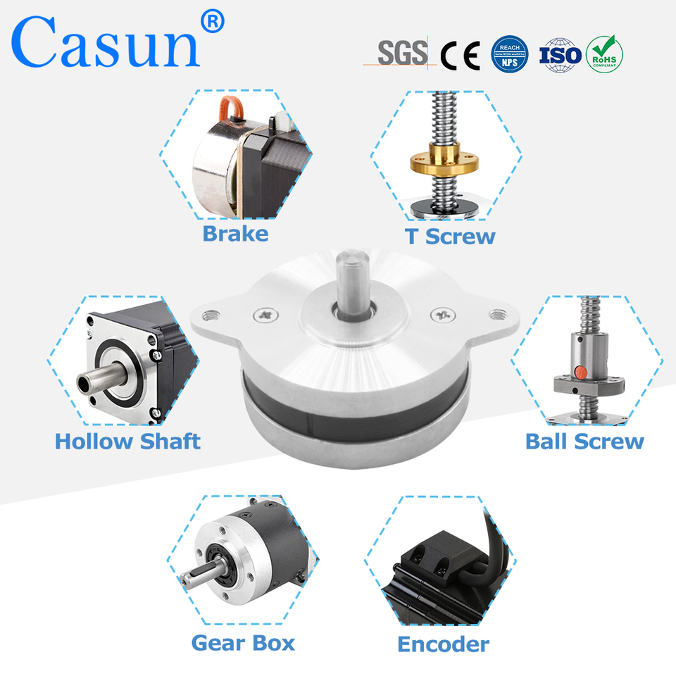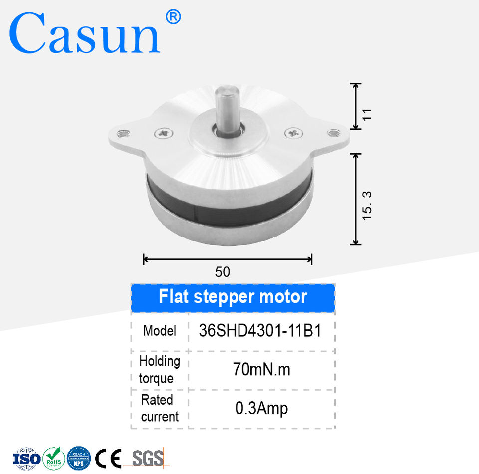 มอเตอร์สเต็ปเปอร์แบบ 2 เฟส NEMA 14 Hybrid Pancake ได้รับการรับรองมาตรฐาน ROHS กำลังไฟ DC 70mN.m แรงบิด 50x15.3 มม. ขนาดสำหรับควบคุมเชิงเส้นของหุ่นยนต์ CNC