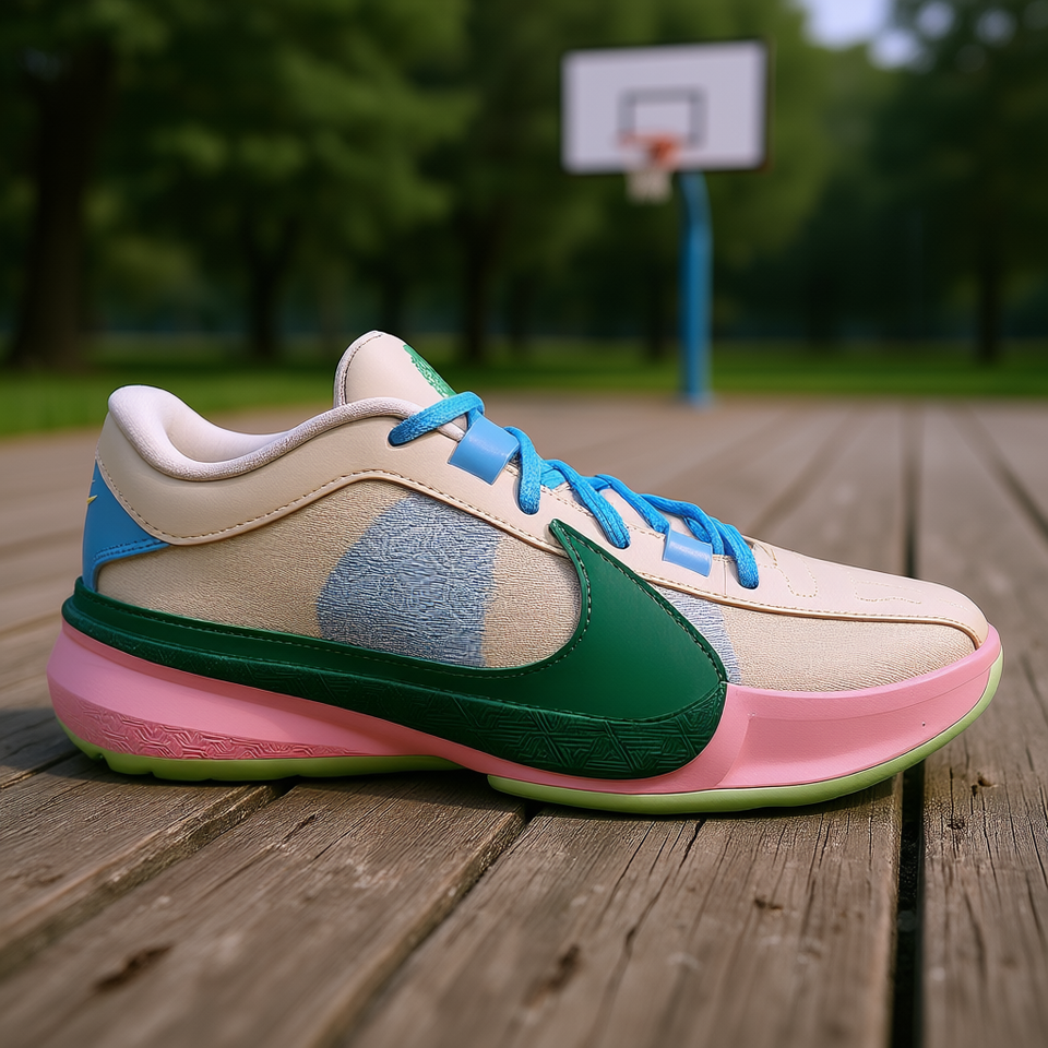 ไนกี้ ซูม ฟรีค 5 รองเท้าบาสเก็ตบอลผู้ชายสีเบจหลากสีตาข่ายสีเบจพื้นรองเท้ายางด้านนอก EVA พื้นรองเท้าชั้นกลางสไตล์ฤดูร้อน