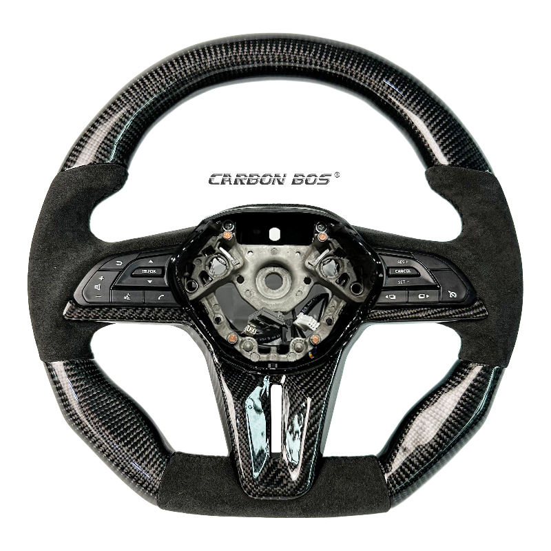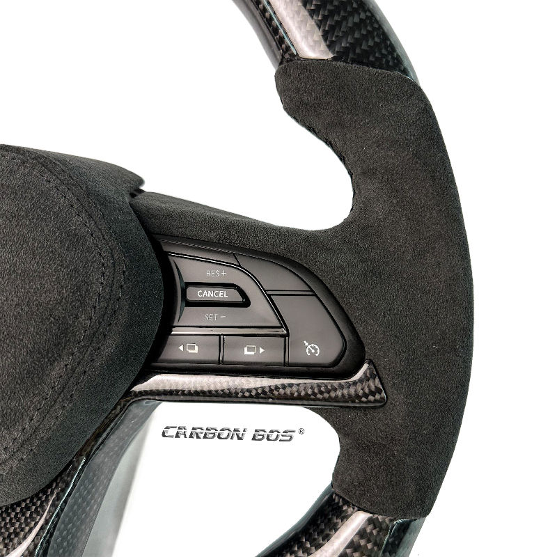 พวงมาลัยคาร์บอนไฟเบอร์สีดำสำหรับรถยนต์นิสสัน จีทีอาร์ อาร์35 ปี 2015 2017 2019 2020 2022 2024 พร้อมอัลคันทาร่า อุปกรณ์ตกแต่งรถยนต์ ปรับแต่งได้