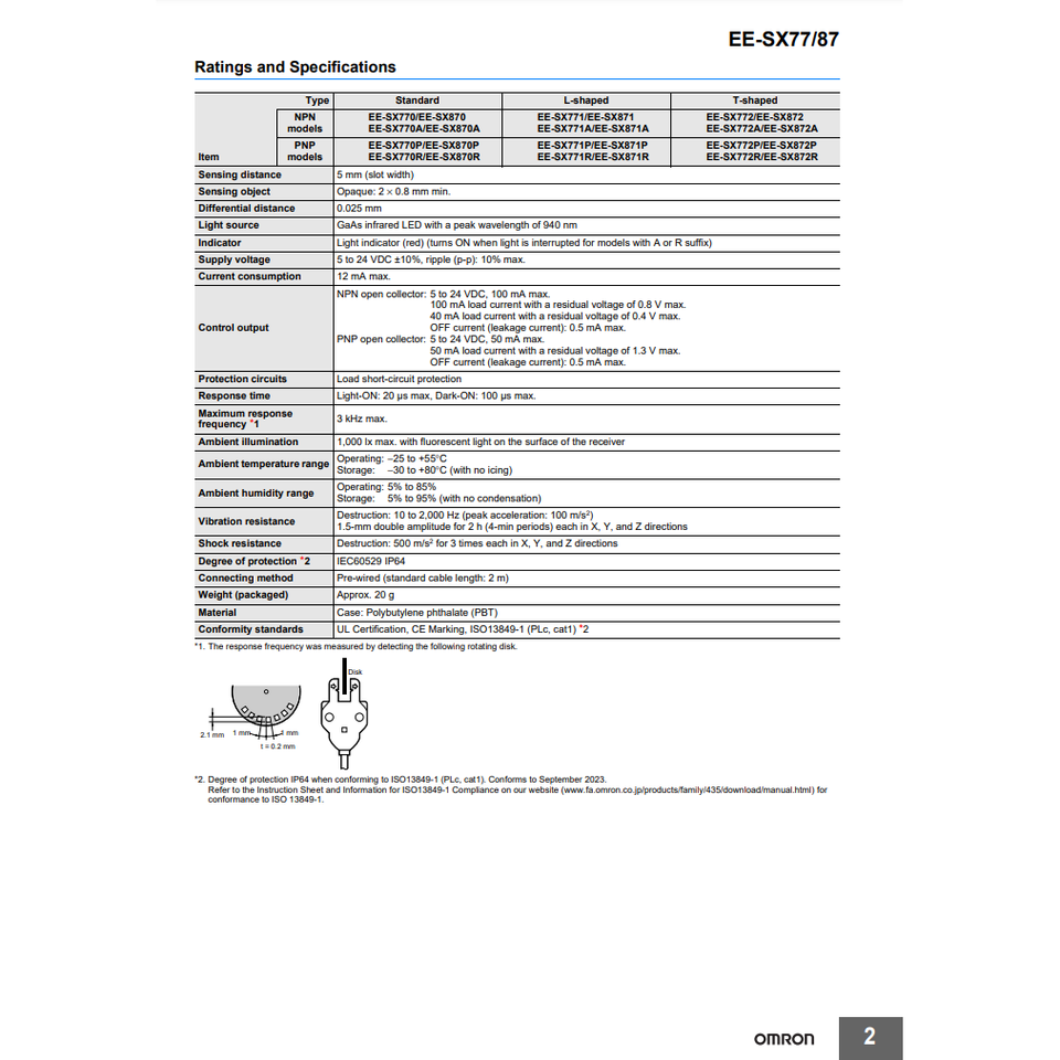 สาย EE-SX771A แบบบางสำหรับ Omron พร้อมเซ็นเซอร์ไมโครถ่ายภาพ