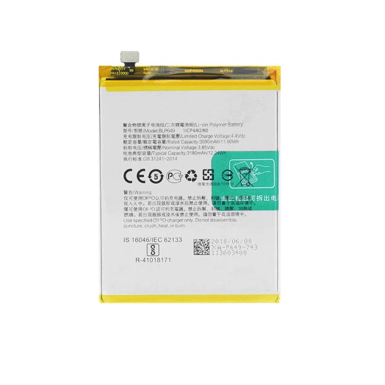 แบตเตอรี่ลิเธียมชาร์จได้สำหรับ Oppo A1 A83 BLP649แบตเตอรี่ลิเธียม3.85V 3180mAh