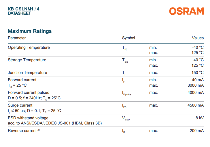 OSRAM OSTAR โปรเจคชั่น คอมแพค, KB CSLNM1.14